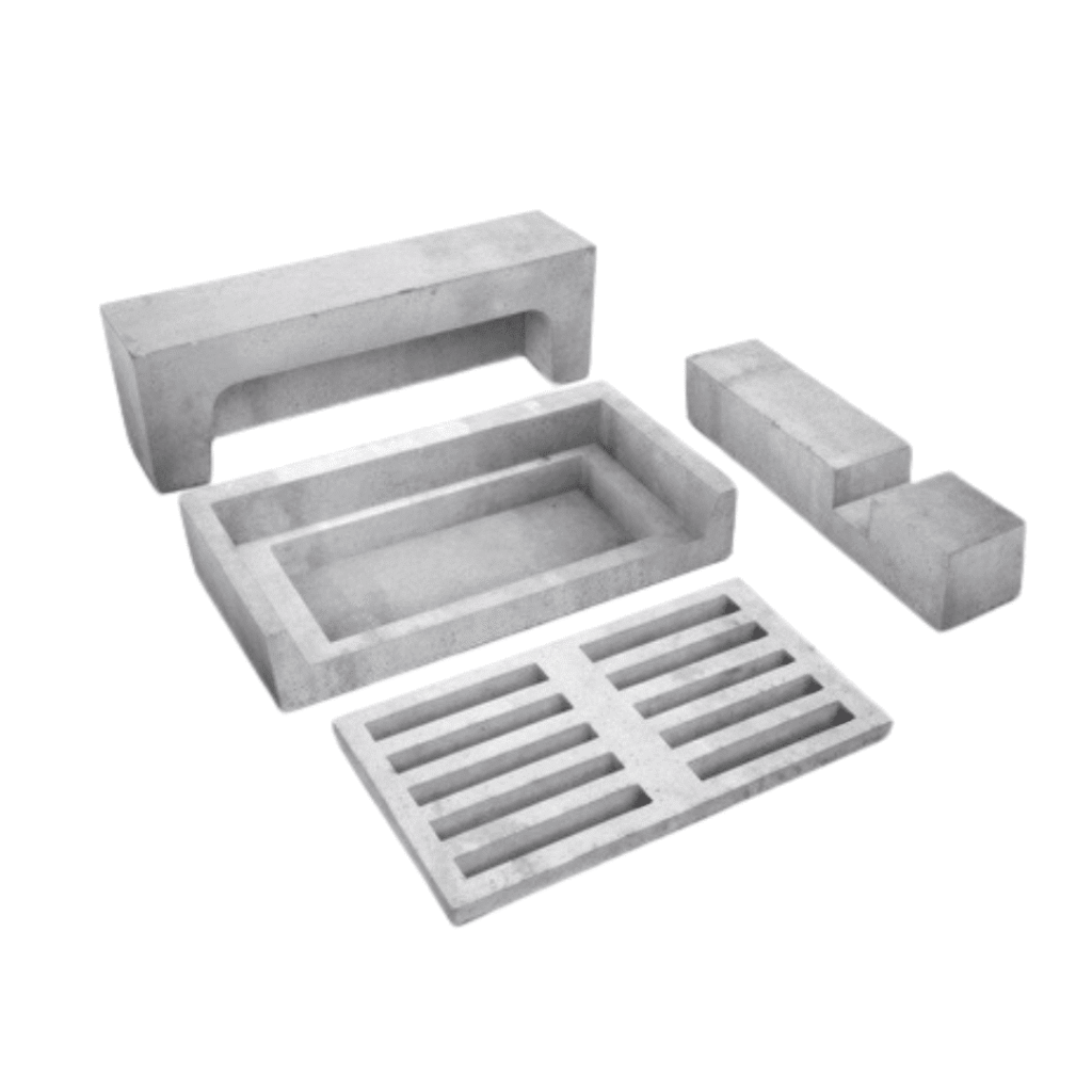 Calhas pré-moldadas em concreto armado ou simples, com junta rígida tipo macho e fêmea, ideais para sistemas de drenagem e escoamento de águas pluviais.